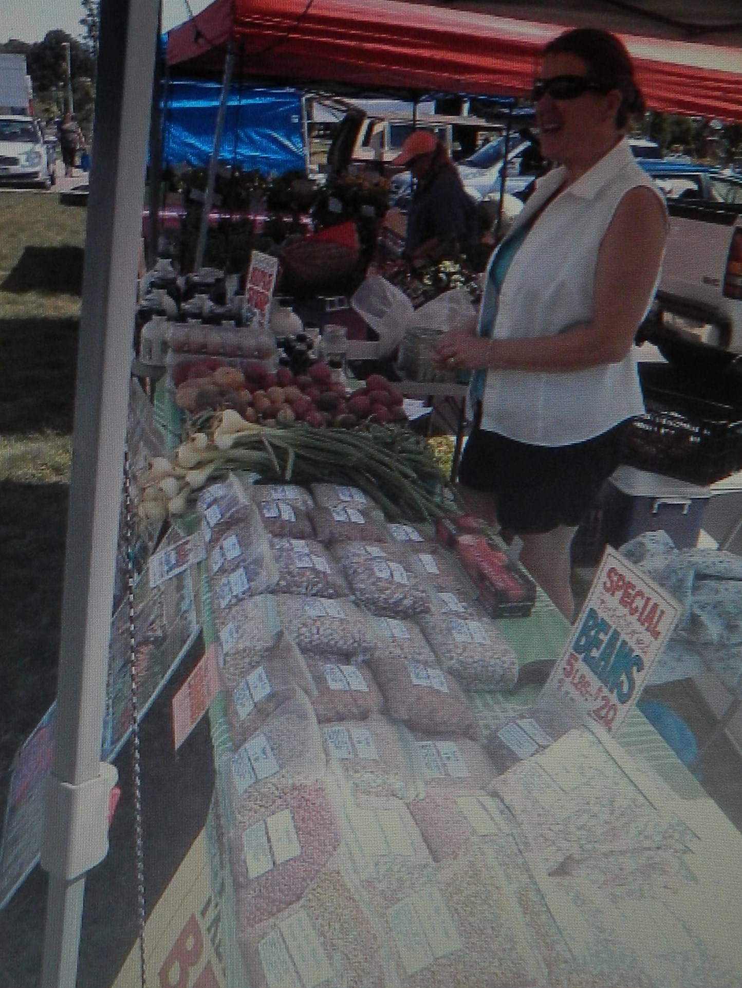 Susan Comte shown at the Newmarket Farmers Market in coastal New Hampshire that features local growers, food producers, craftsmen and businesses.