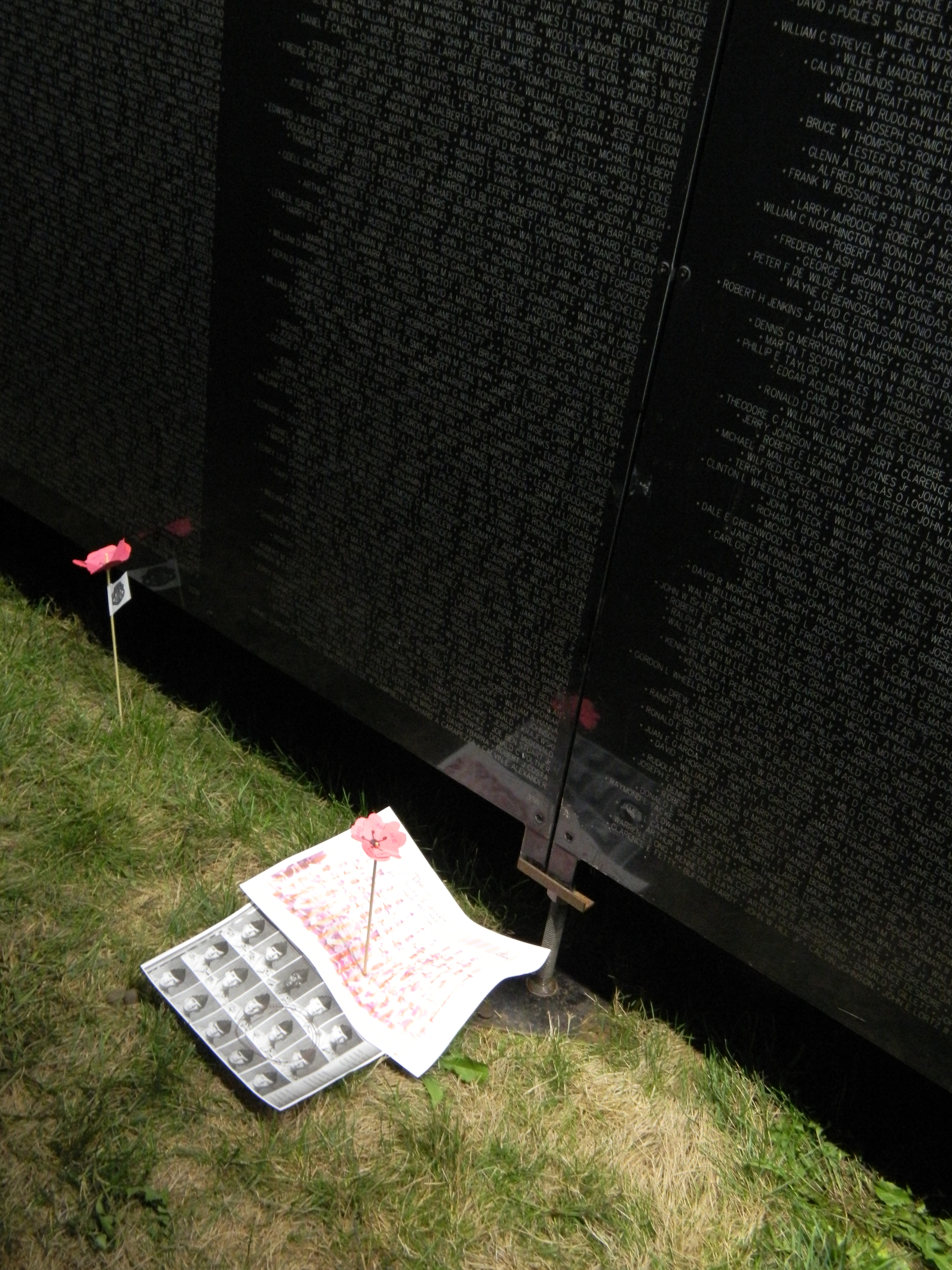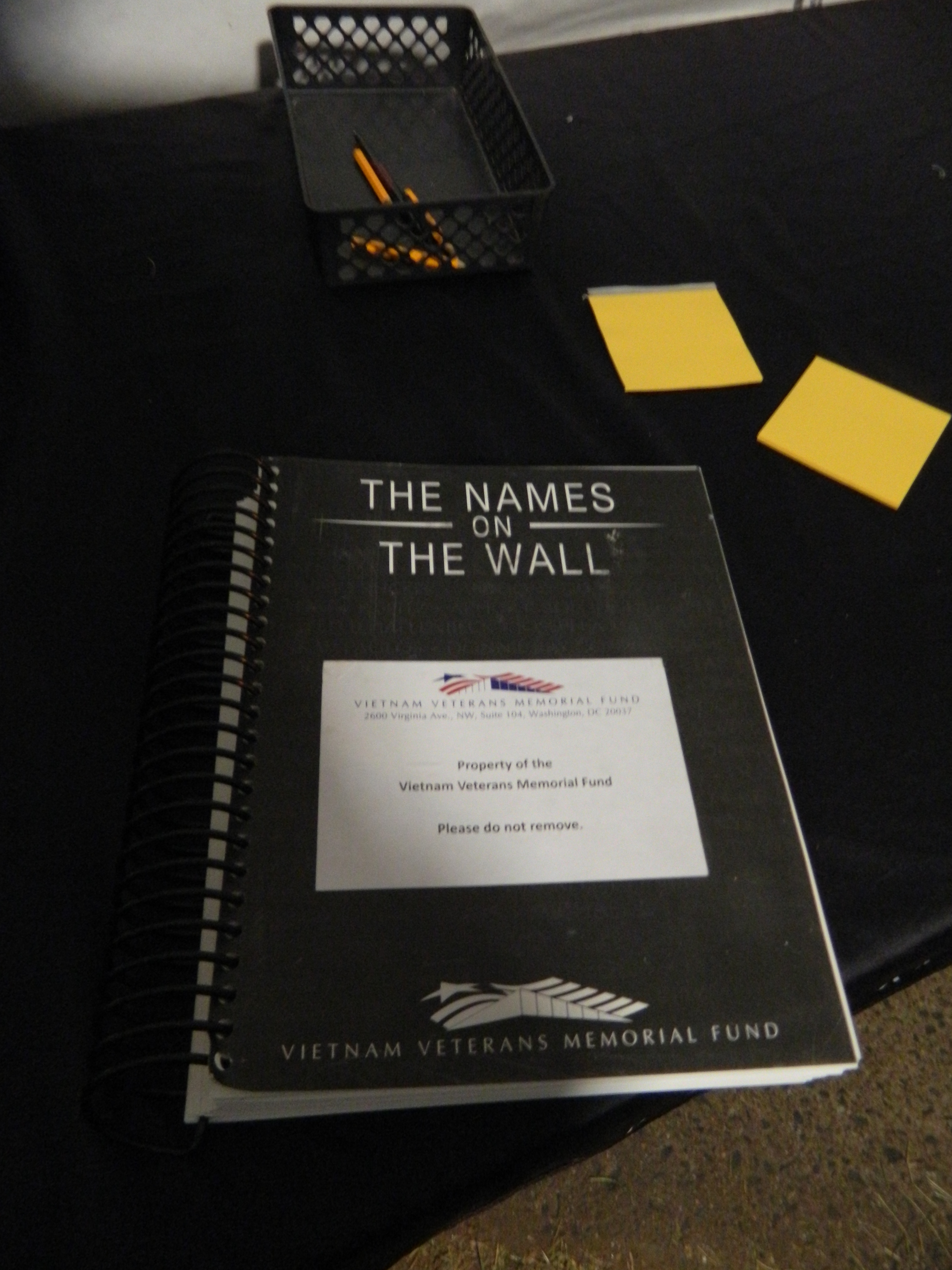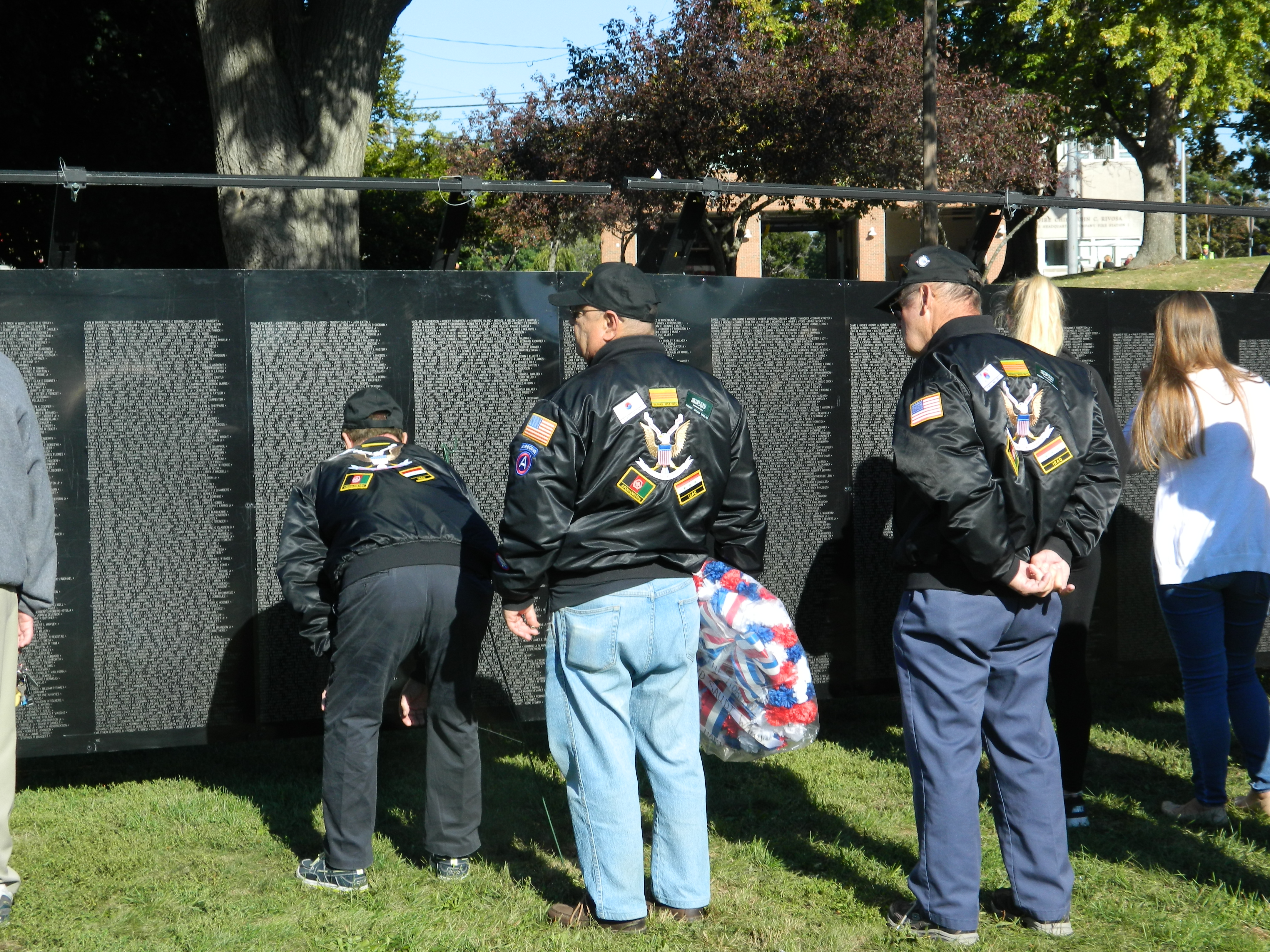 “The Wall That Heals” is a mini replica of the Vietnam Memorial in Washington D.C. Listed on the long, v-shaped, moving monument are the names of those who lost their lives during the war. The monument is meant too as a tribute to all those who served, as well as, those who remain missing. Mementos of respect and affection could be seen on the ground in front of some panels of names.