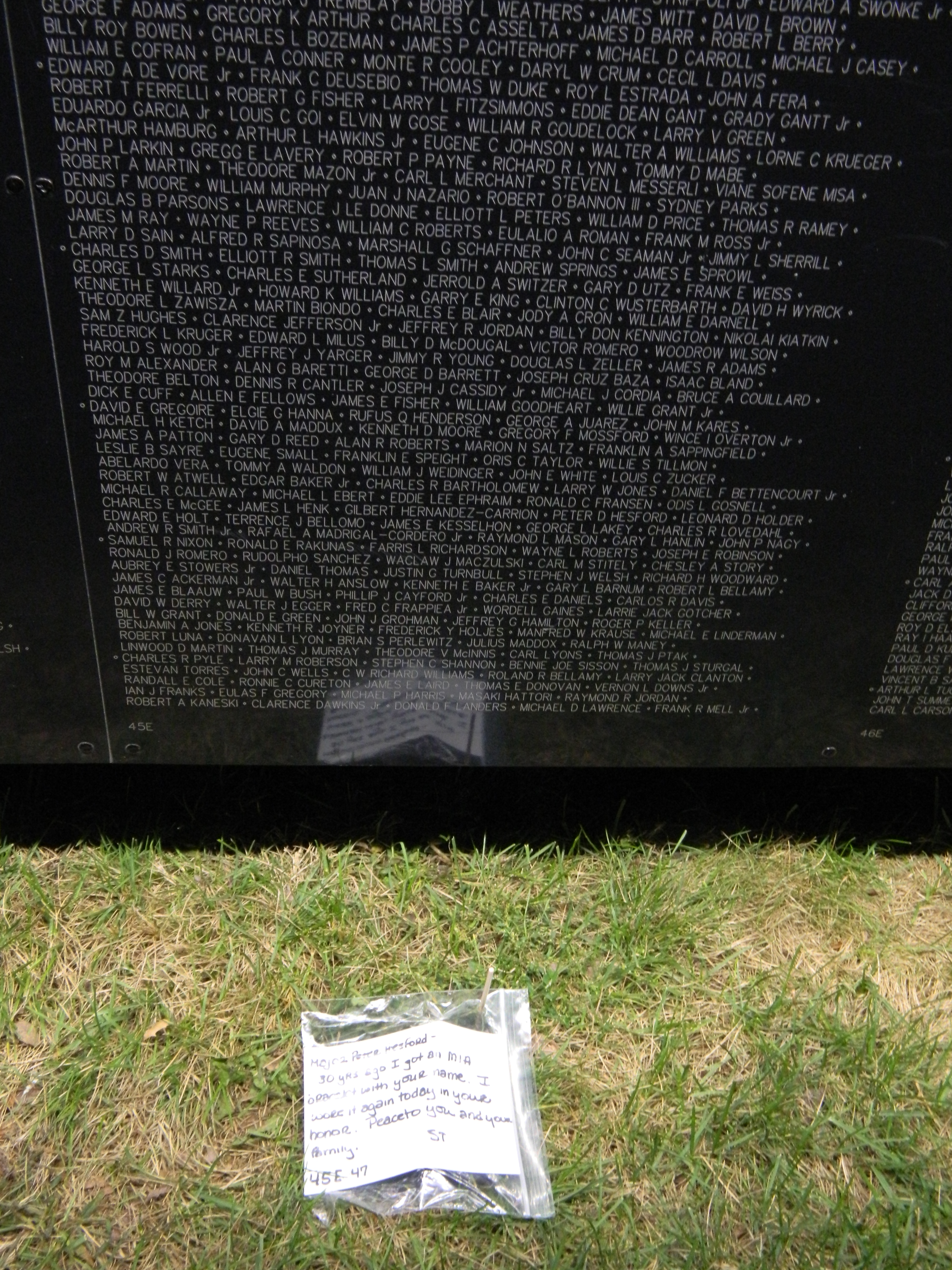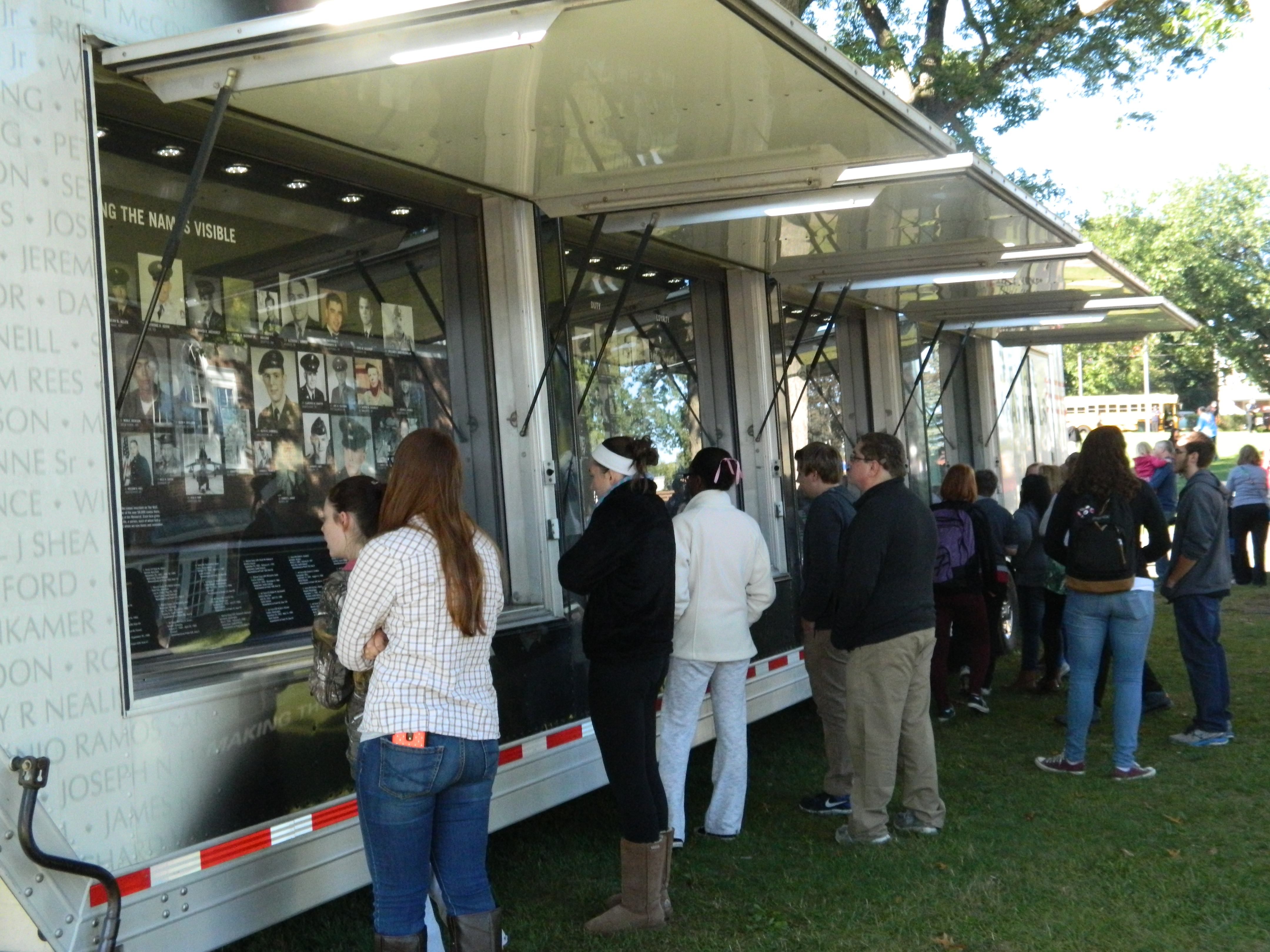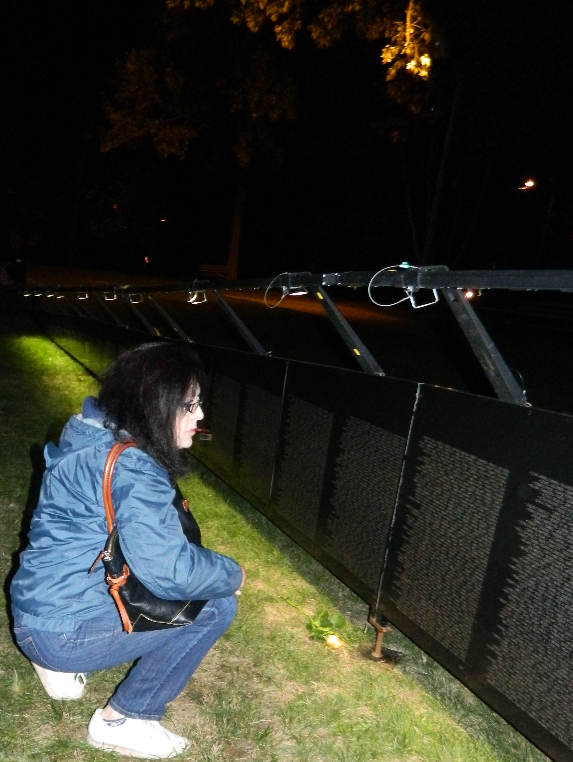 “The Wall That Heals” is a mini replica of the Vietnam Memorial in Washington D.C. Listed on the long, v-shaped, moving monument are the names of those who lost their lives during the war. The monument is meant too as a tribute to all those who served, as well as, those who remain missing. Mementos of respect and affection could be seen on the ground in front of some panels of names.