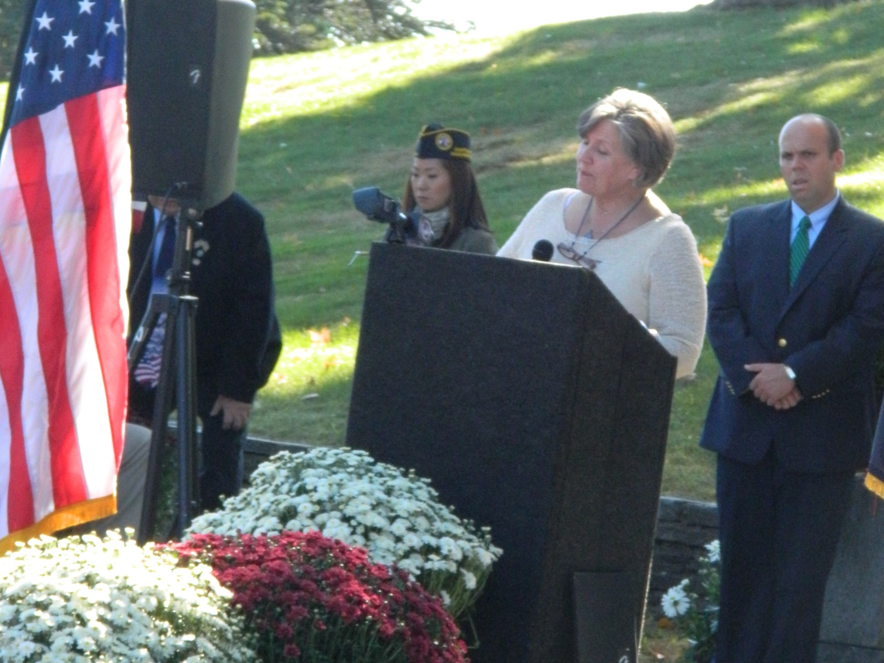 Miller and her brother, Col. Kipp Miller, were among a small number of family members of the fallen from Manchester who addressed a large crowd in Center Memorial Park on a sunny, autumn morning.
