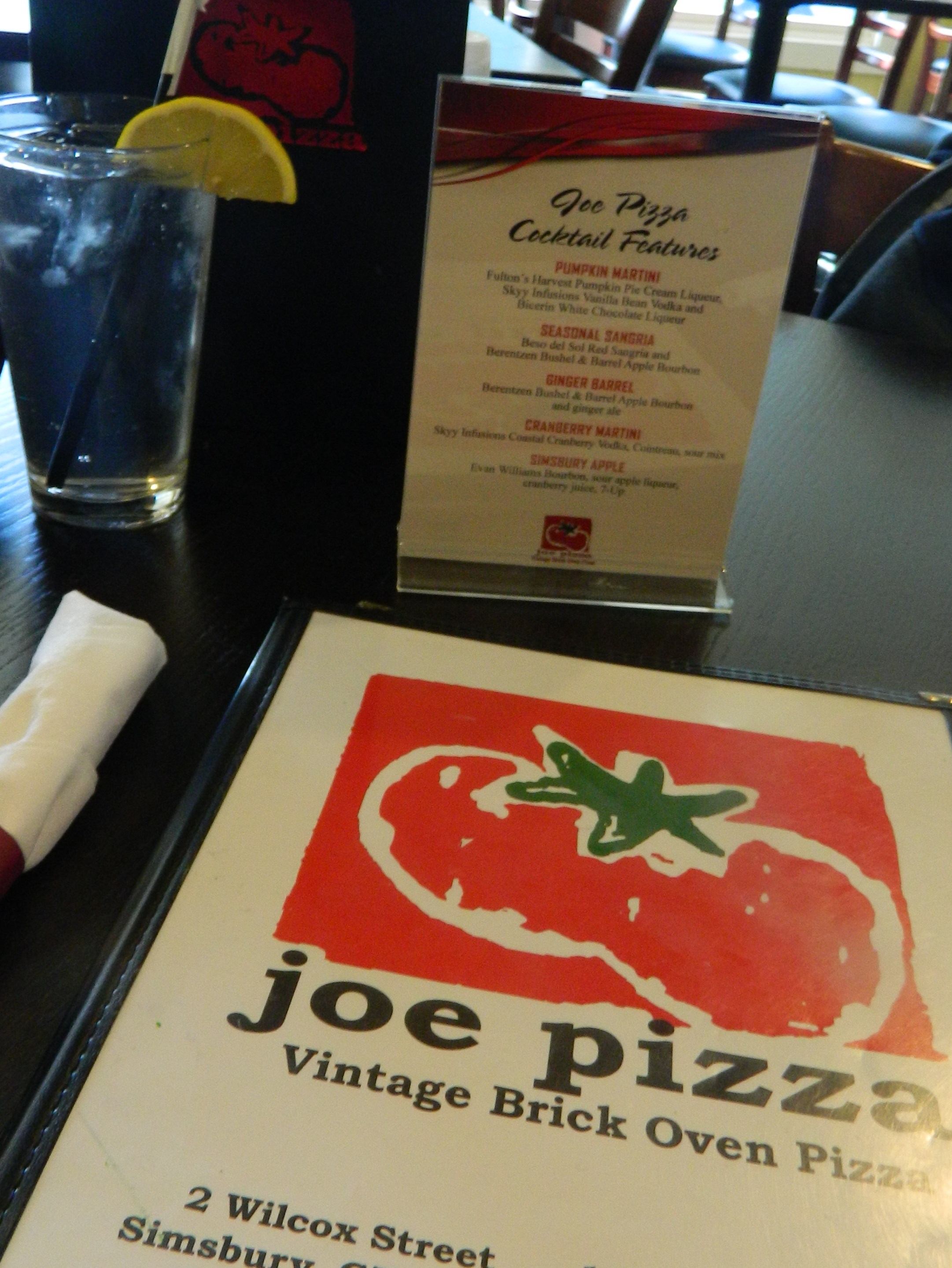“Joe Pizza” is situated on the corner of Hopmeadow and Wilcox streets in the center historic district of lovely Simsbury, Connecticut. Why “Joe Pizza” and not Joe’s Pizza is a mystery, but what’s certain is that this restaurant’s slogan fits perfectly – “Mmm.. Joe Pizza“.