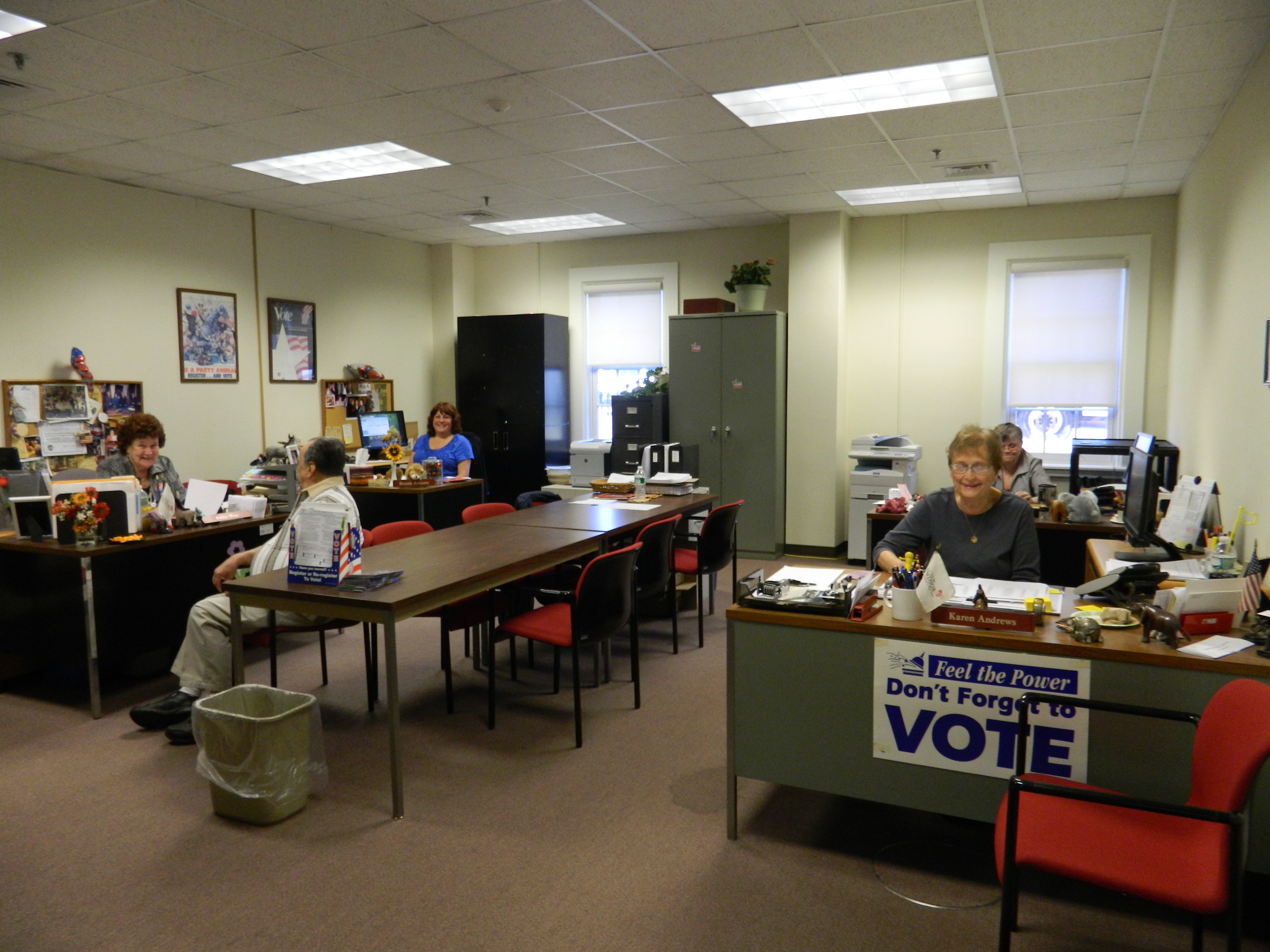 Registrars’of Voters office Windsor, CT – hard at work on municipal election day Tuesday, Nov. 3, 2015.