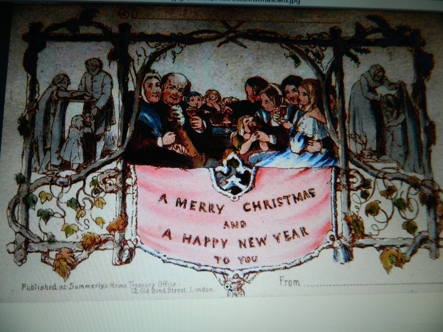 Firstchristmas card licensed under U.S. public domain “via Wikimedia Commons”.