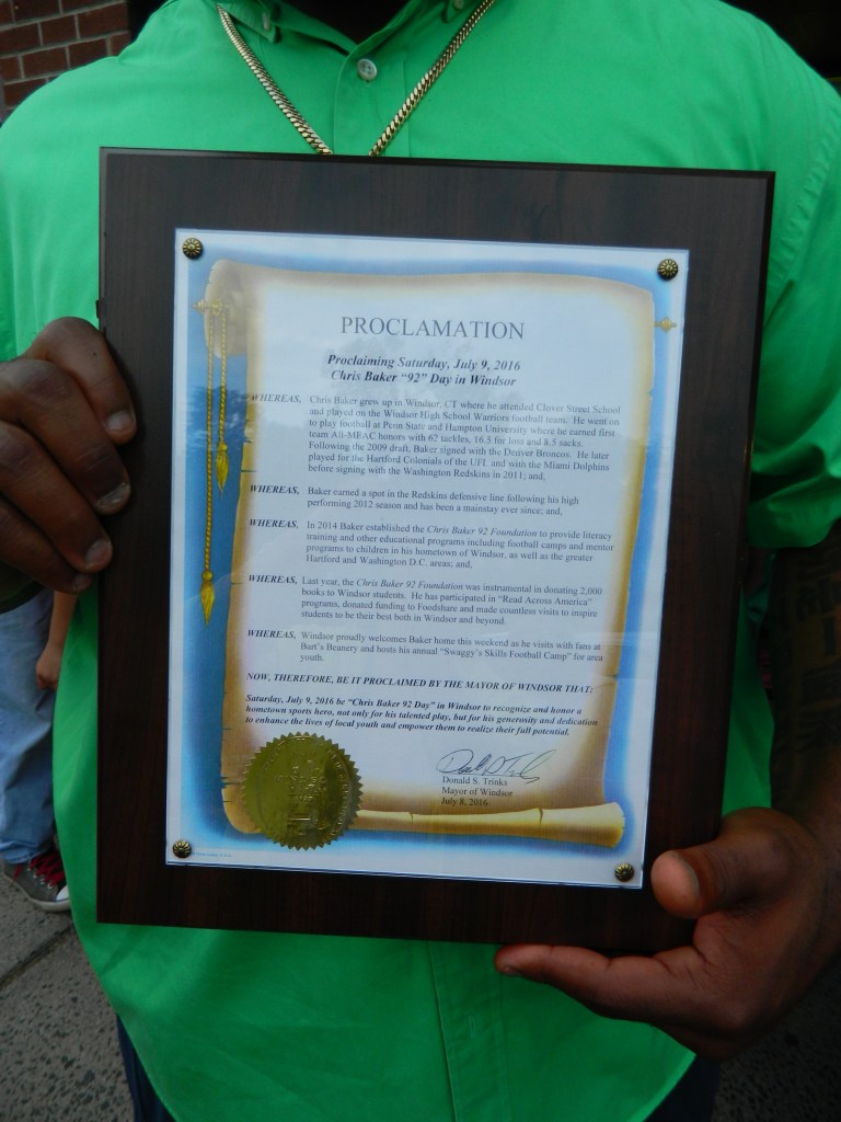 Chris Baker “92” Day Declared by Windsor, CT Mayor at Bart’s Beanery, “It’s Swaggy Day”!
