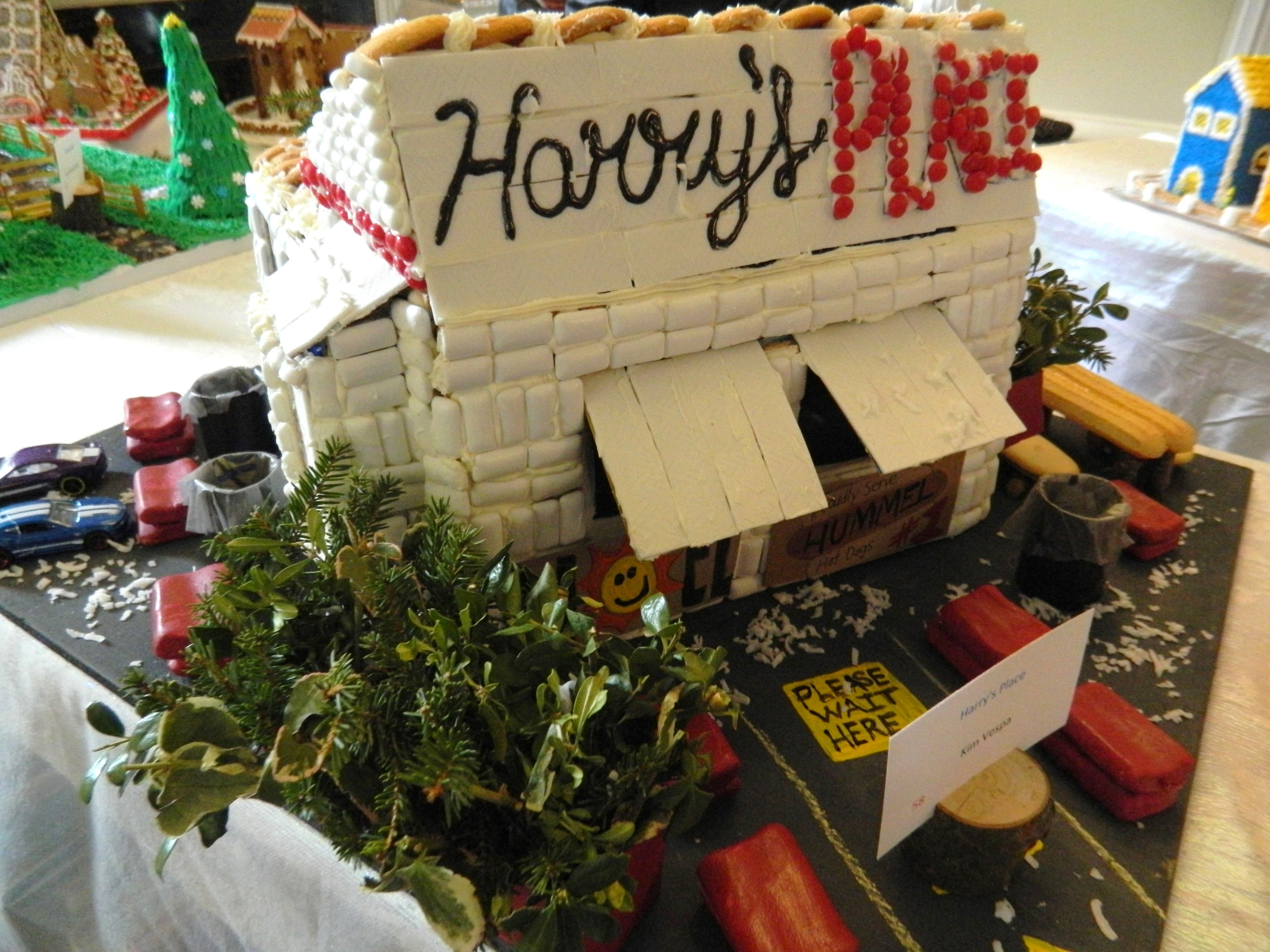 A gingerbread replica of Harry’s Place, a popular roadside hot dog stand located in Colchester , CT in a shack listed on the National Register of Historic Places.