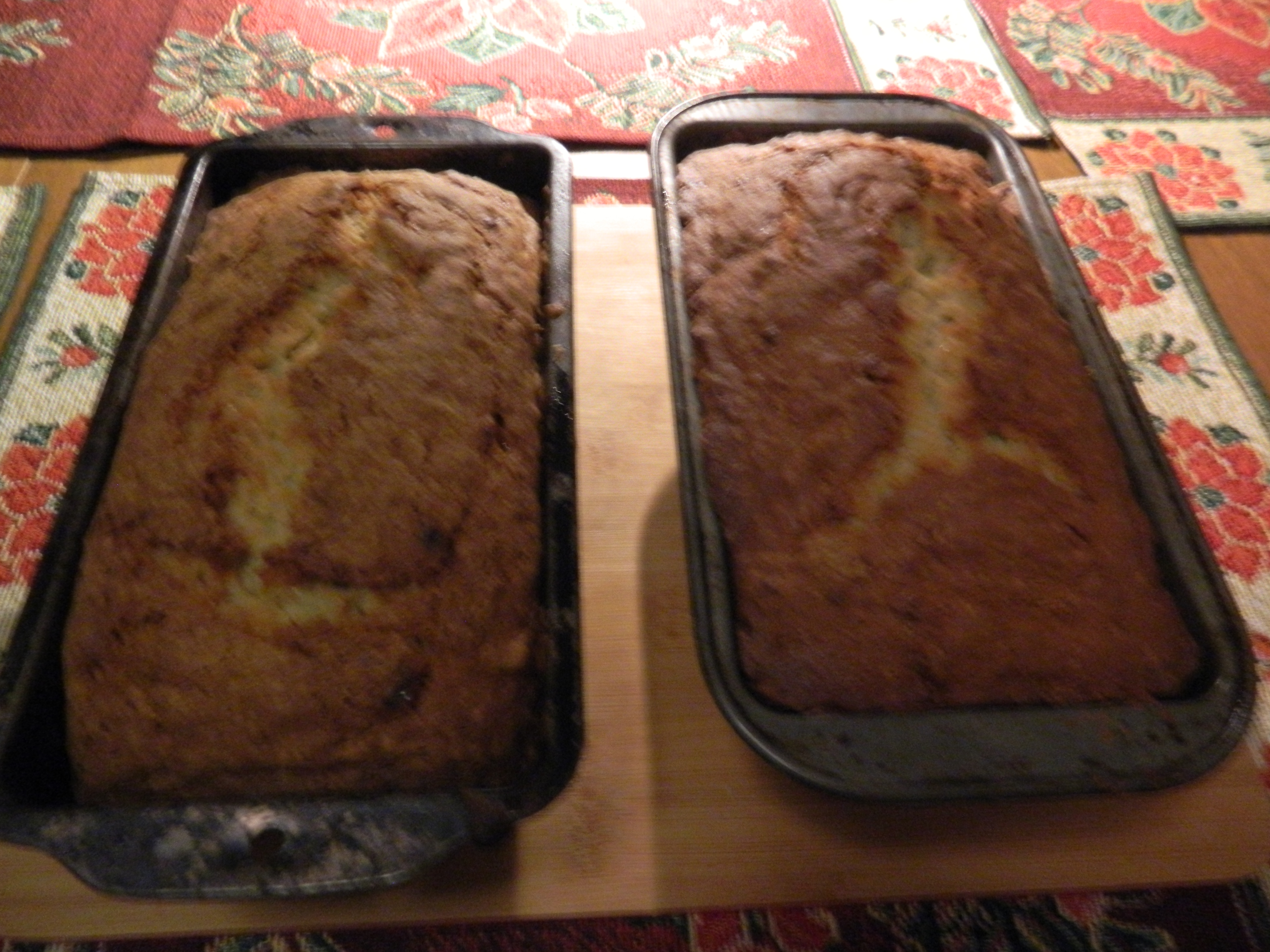A sight that heralds the holiday for me is loaves of banana bread fresh out of the oven, later wrapped in foil for delivery. This isn’t just any banana bread, it is a family baking tradition being carried on by my sister Candy made from our mother Cecelia’s recipe which was handed down to her from our grandmother Delia. It is tricky trying to achieve the precise flavor and consistency resulting from this recipe. Done right the taste is beyond compare.