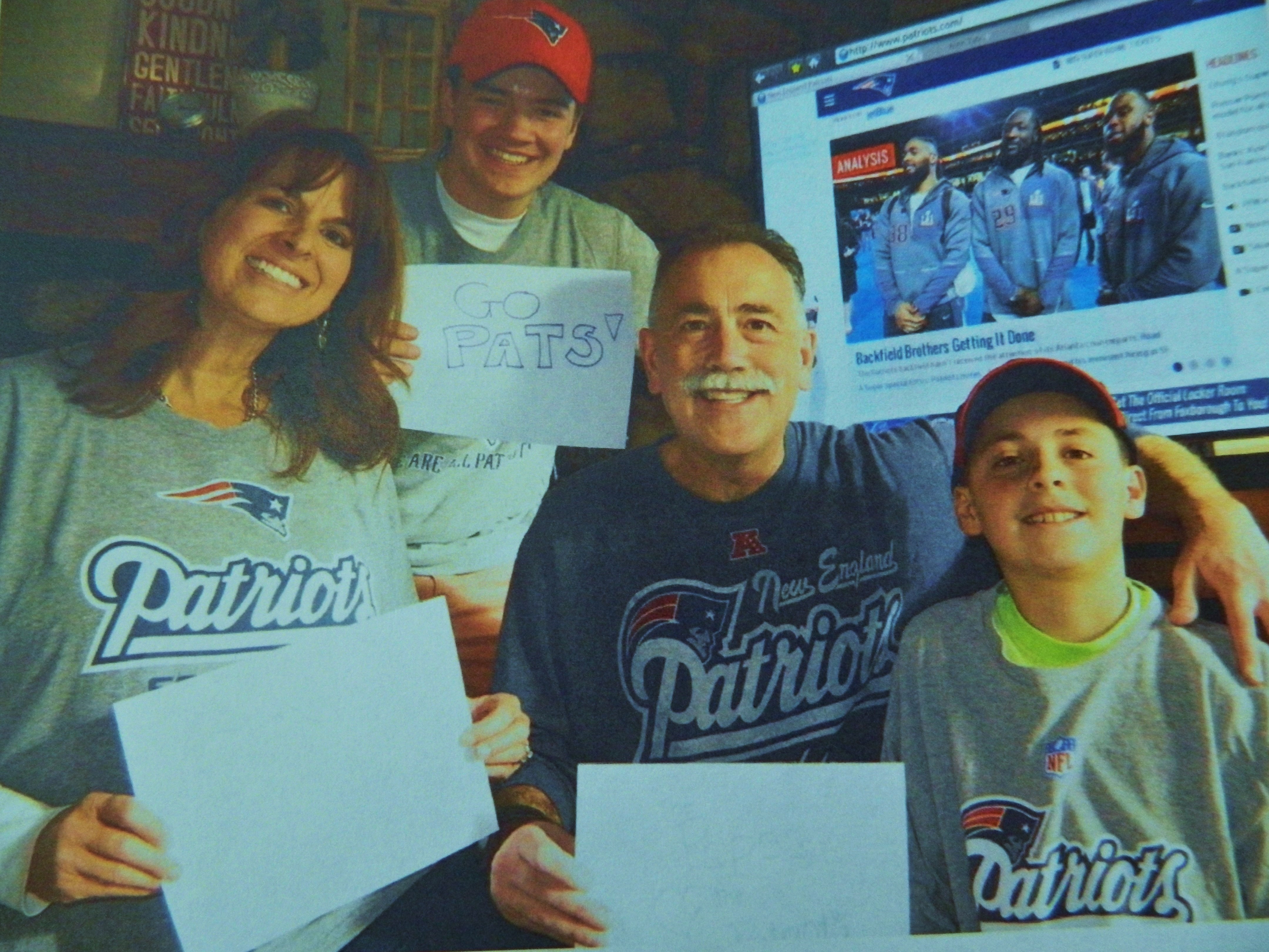 From Colorado, Patriots fans, Brad with his wife Kathleen and their sons Kieran, 14 (standing) and Gabe, 13.