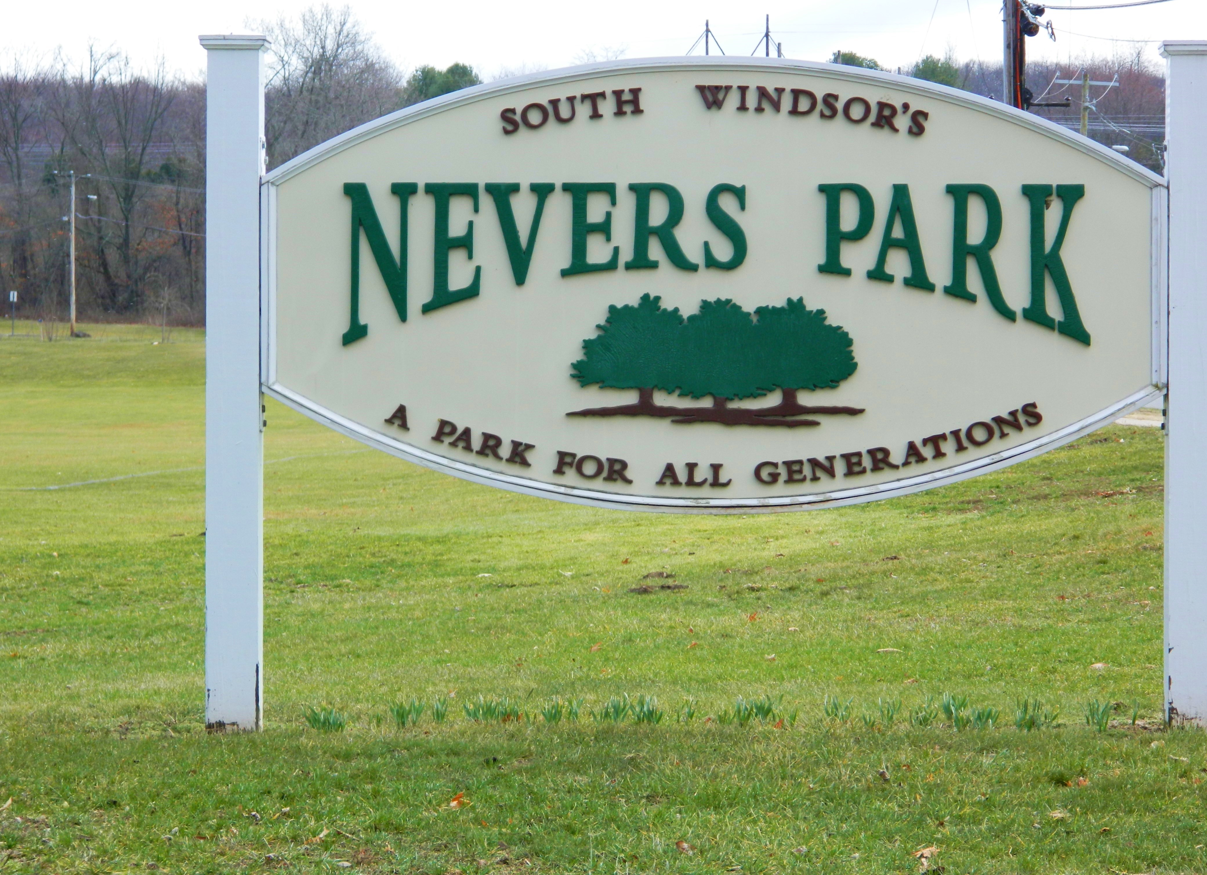 Located on the corner of Sand Hill and Nevers Road the park is directly across the road from the South Windsor Police Station and behind South Windsor High School. It is a popular and typically active recreational spot which also has a Rotary Pavilion available for impromptu picnics, or that can be rented for special occasions. There is a 20,000 square foot boundless playground and at the top of Sand Hill is a dog park, “Bark Park”. Nearby an emergency phone and water fountain can be found. Several side-by-side soccer fields can host multiple concurrent games at the lower level. Don’t hold me to this but I believe Connecticut Grey – a rugby club for mature men – practiced here at some point.