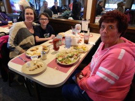 Liz Scott and longtime family friend Ann Walsh with James, Maggie and Ariana Nikolis (siblings) and Juliana McMahon May 5, 2017 at Jim’s Pizza in Windsor, Connecticut.