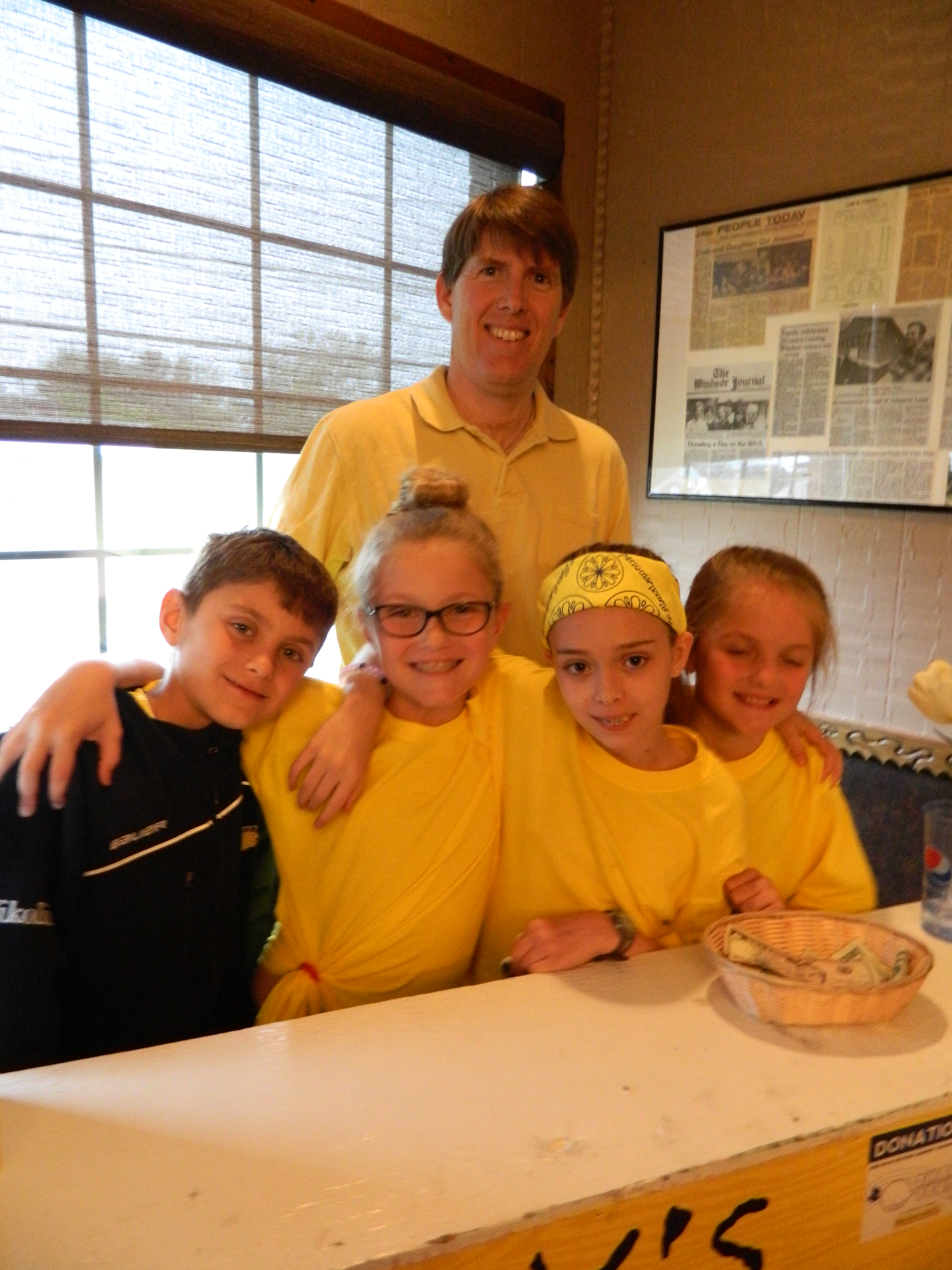 Liz Scott and longtime family friend Ann Walsh with James, Maggie and Ariana Nikolis (siblings) and Juliana McMahon May 5, 2017 at Jim’s Pizza in Windsor, Connecticut.