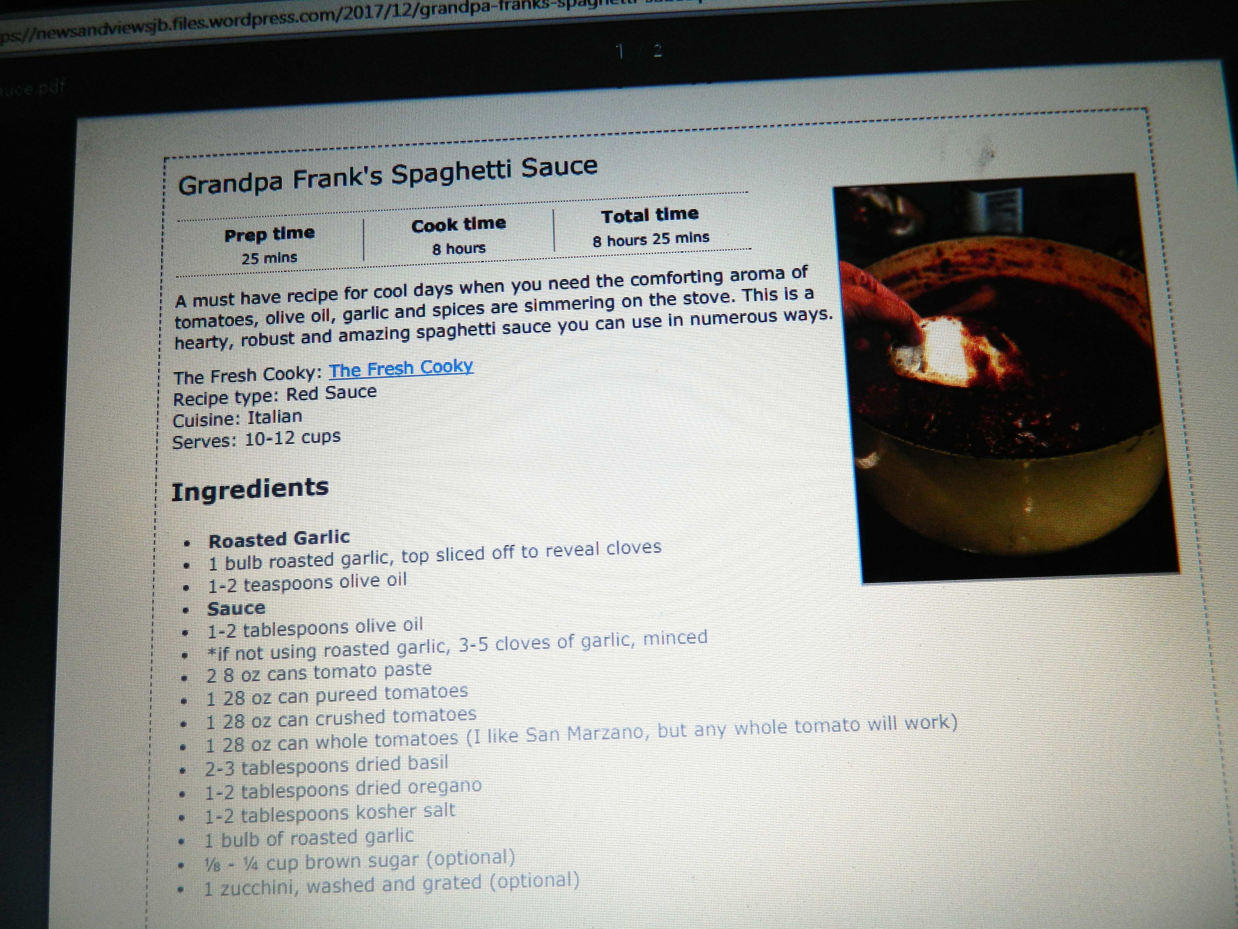 In Time For the Holidays – “Grandpa Franks’s Spaghetti Sauce” from Kathleen