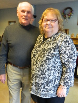 Jane Garibay is pictured Thursday, April 19, 2018, with Neal Cunningham ~ former chair of the Windsor Locks Democrat Town Committee during the kick-off to her campaign for the 60th House District.