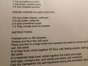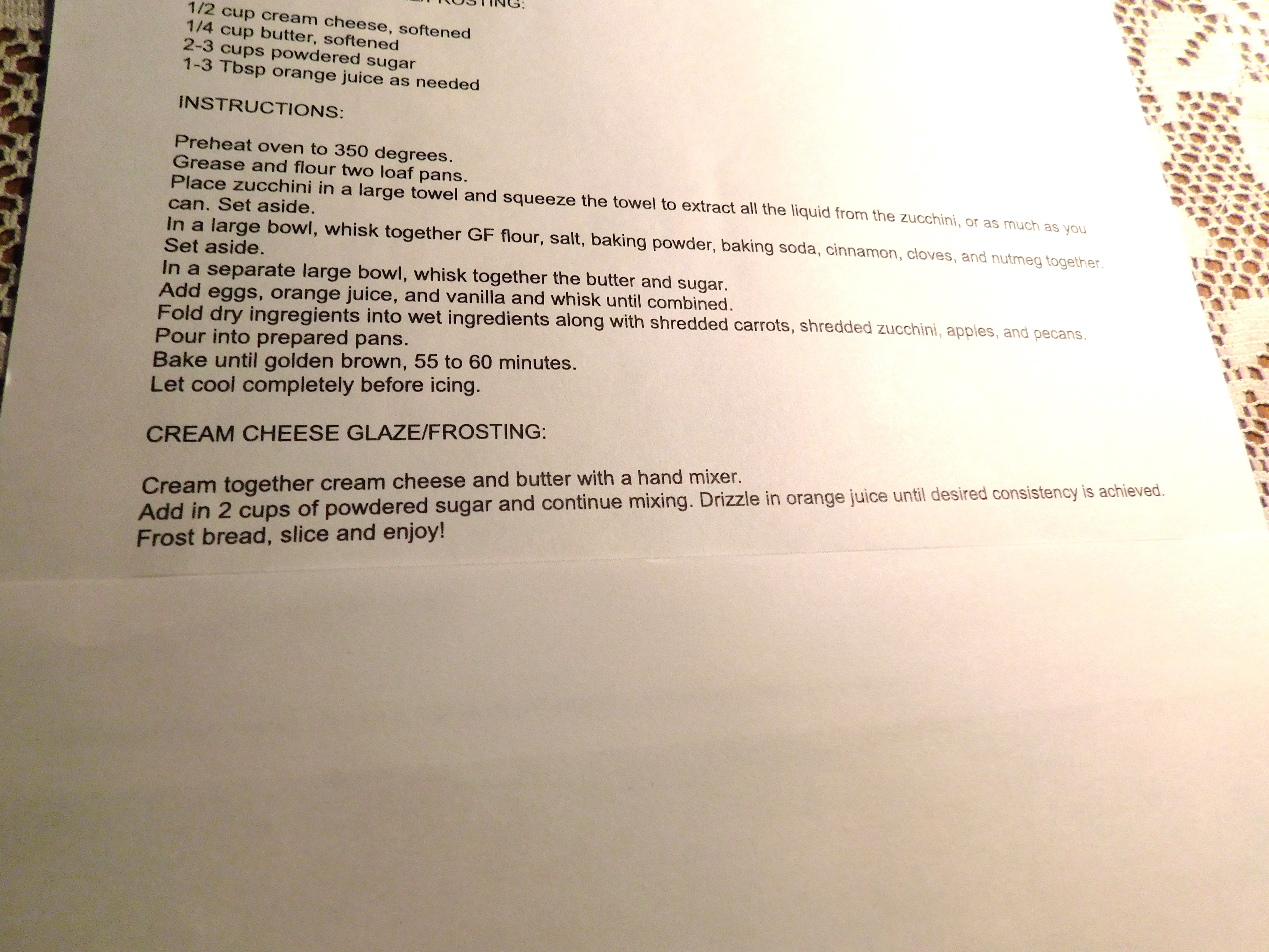 Mom’s granddaughter-in-law Melane Larned sent me her terrific Carrot, Apple, Zucchinni GF Bread recipe at my request to add to Mom’s Recipe Box. And, Melane sent me the accompanying photos.