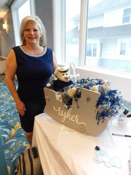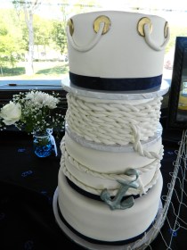 And she said, Laurie was ready and willing to pitch in. The theme for both Maryann’s wedding shower and wedding was nautical so Melane made certain every detail that could be ~ was nautical !