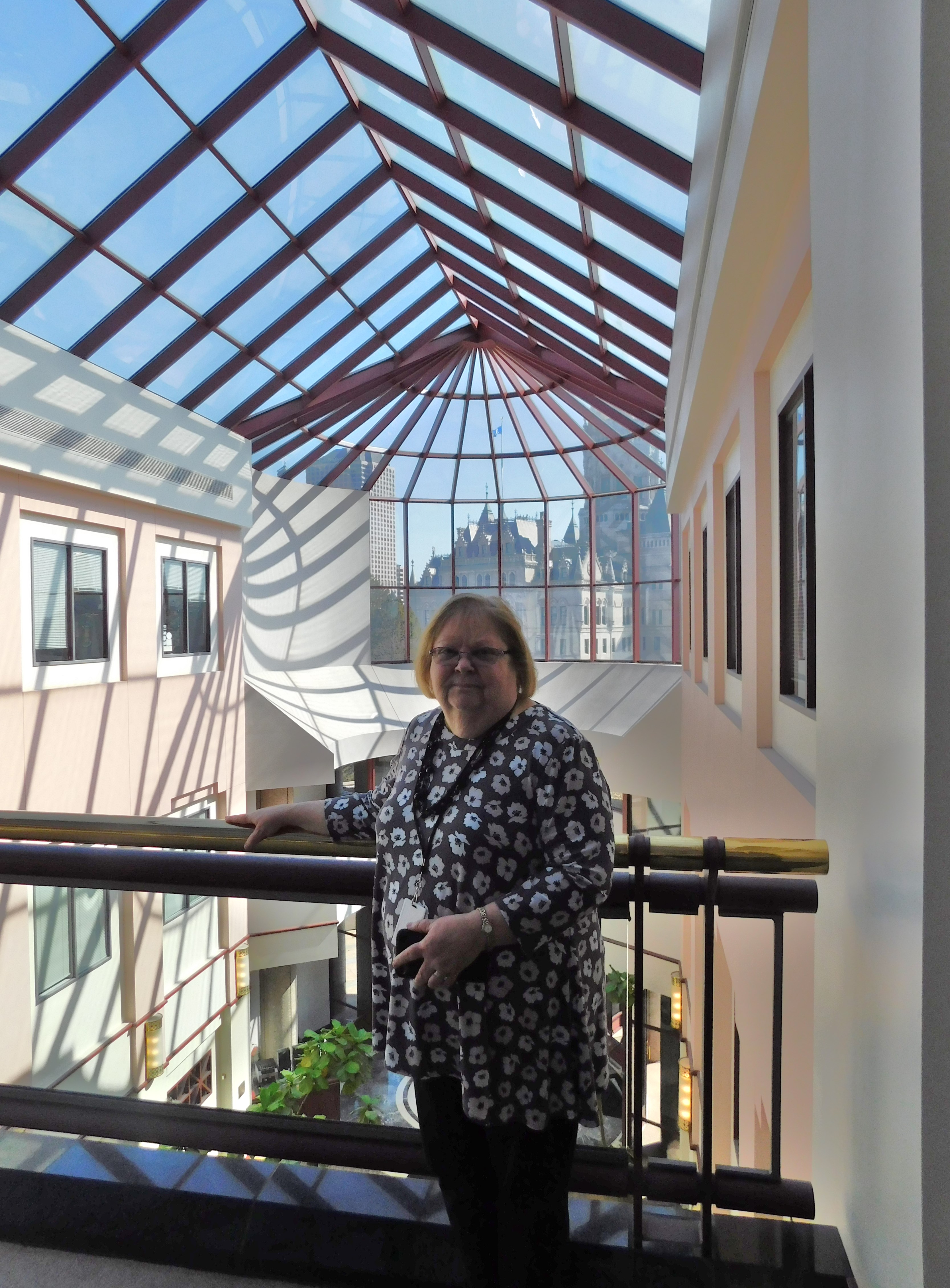 State Rep. Jane Garibay (D-60th) at the Legislative Office Building ~ through the window in the backdrop can be seen Connecticut’s Capitol building in Hartford. Photo by Jacqueline Bennett 3/28/2019