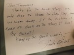 Treasures found are one of the great outcomes of spring cleaning. Such is the case for me this May when I came across a “thank you” note from Sylvian E. Ofiara.