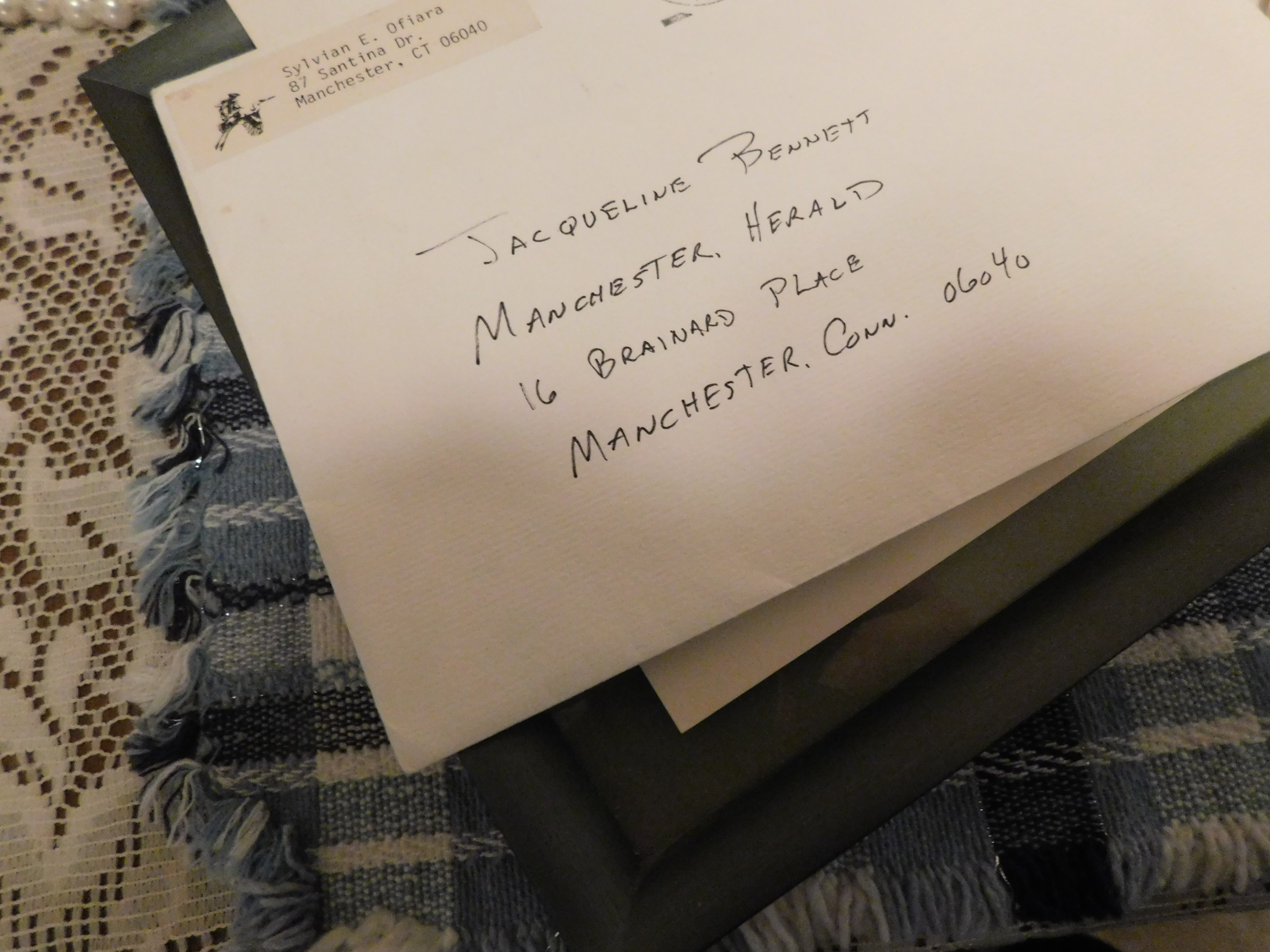 “Thank You” note from photojournalist Sylvian E. Ofiara, “Sinch” who worked for the Manchester Evening Herald which was later called The Manchester Herald, a former daily newspaper in Manchester, CT.