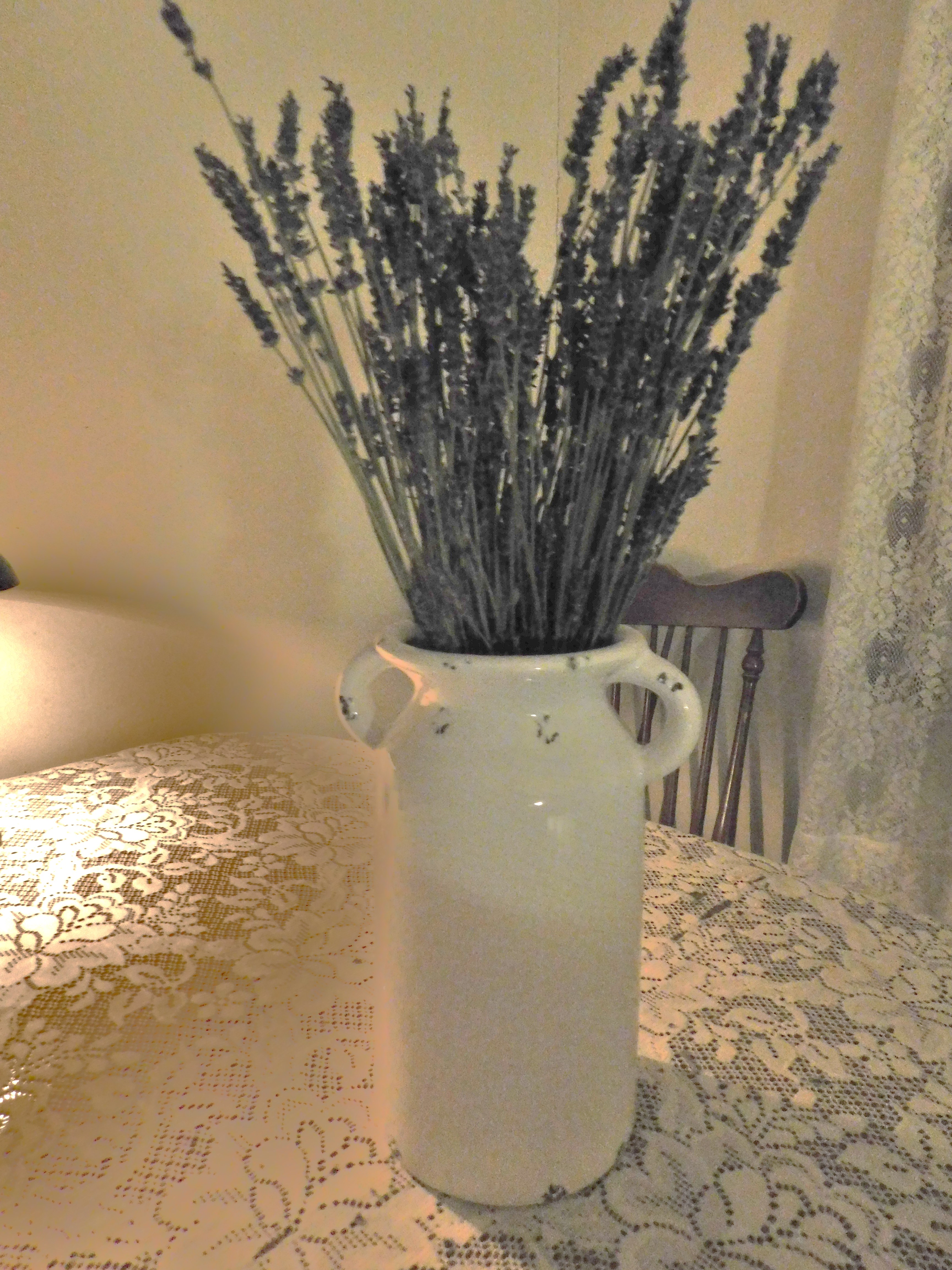 That noted, it is such a pretty herb/plant, visually pleasing. Aromatic lavender has a gentle scent and can add the perfect accent of soft COLOR to a space. At the moment, I have mine on the dining room table which is covered by a white lace tablecloth. With spring just around the corner, I’m looking forward to perusing Home Depot and Lowe’s nurseries for lavender plants. Among the most popular species of lavender are English & French, which vary in sprig size and longevity. Lavender farms make for a pleasant destination, there is one in Harwich up on The Cape (Cape Cod, MA) and one closer to home in Tolland, CT. , Lavender Hill Farm.