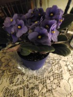 Turning to one of my favorite sources, The Old Farmer’s Almanac (established in 1792) ~ African violets, a tropical plant, thrive in lower, indirect light. It is best to keep the soil slightly moist, watering this small houseplant with room temperature water, from the bottom. Online sources concur that humidity is “vital to the health of African Violets.” They do grow with white flowers but my preference is purple or blue for yet another pretty splash of COLOR in a space. African violets have fuzzy leaves and it is best to use a small soft brush for dusting. They are symbolic of beauty, pain & struggle, says 2healing.com. Happy almost spring everyone …