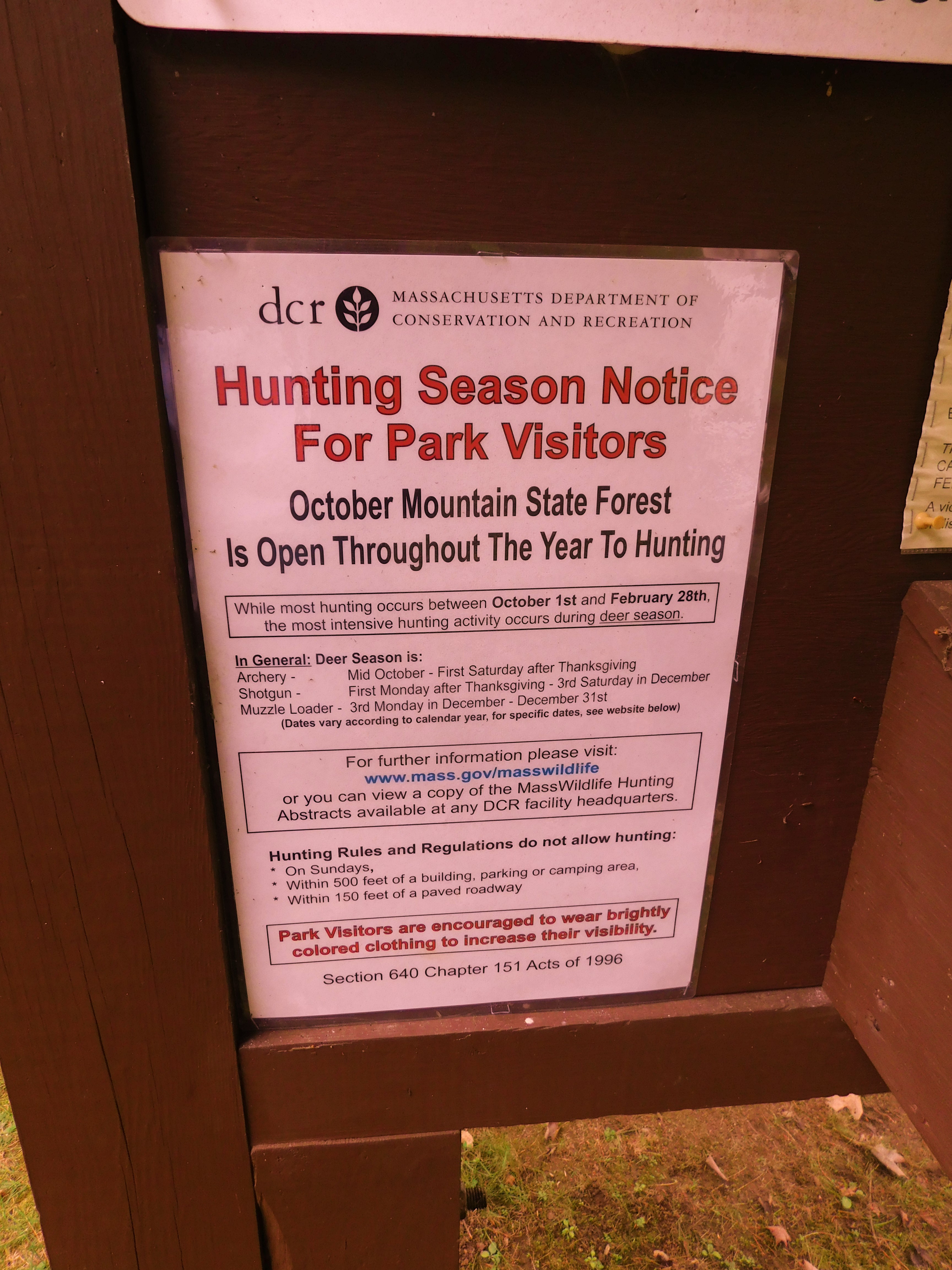 Admittedly again, upon arrival at October Mountain I felt a pang of the “flight or fight syndrome” but worked through it to stay, get out of the RAV4 and make our way along a couple trails. The park was hosting a motocross competition that day and there were some other hikers about, including a family. The park ranger was in his hut and overall it was probably a relatively safe day to be on October Mountain – a name I adore.