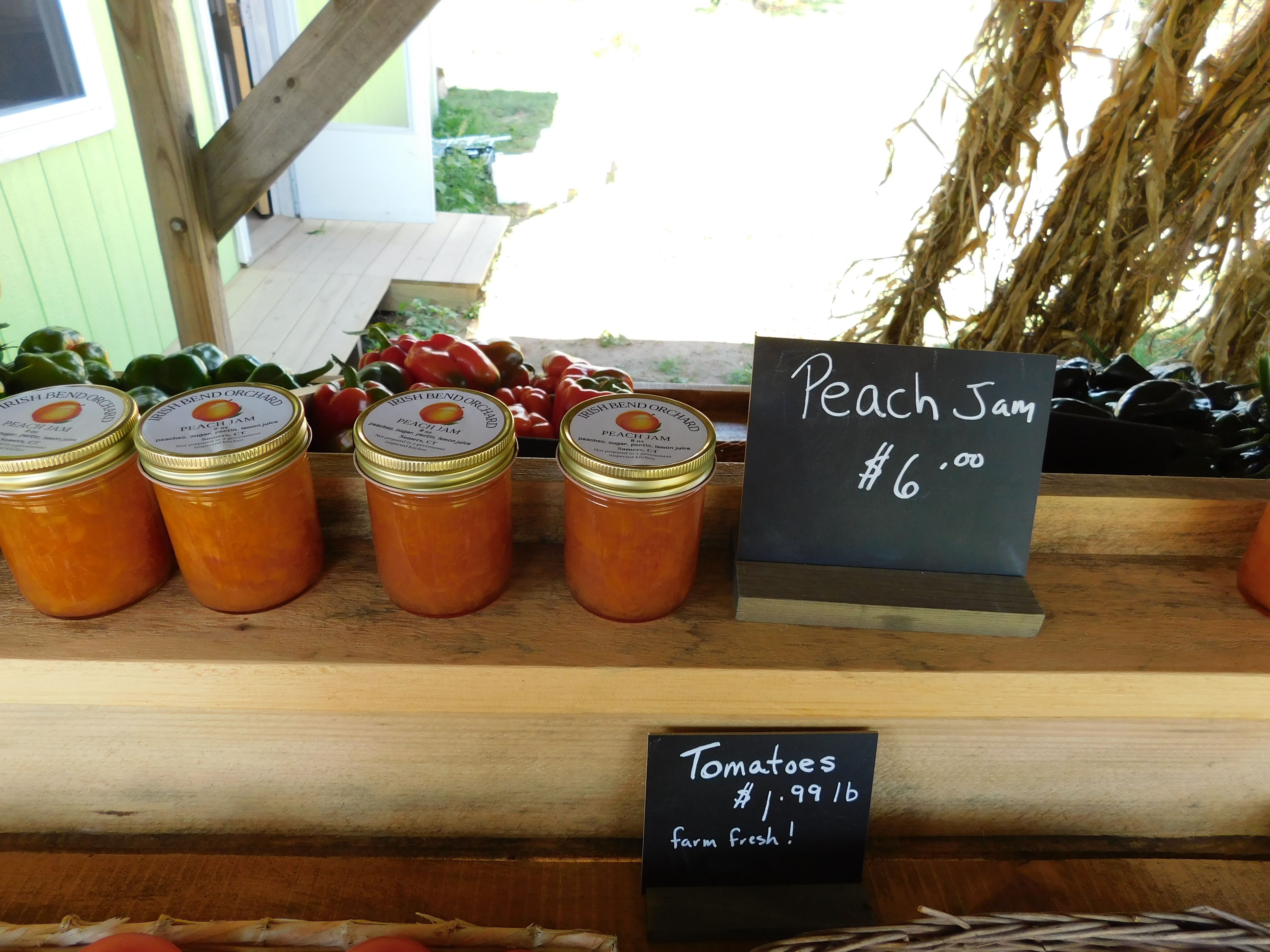 Judiciously picking about a dozen, I figured I had plenty to put up a batch of my Wicked Girl jam – this will be another first for me – peach jam. In addition to local honey and other fresh from garden items, they sell peach