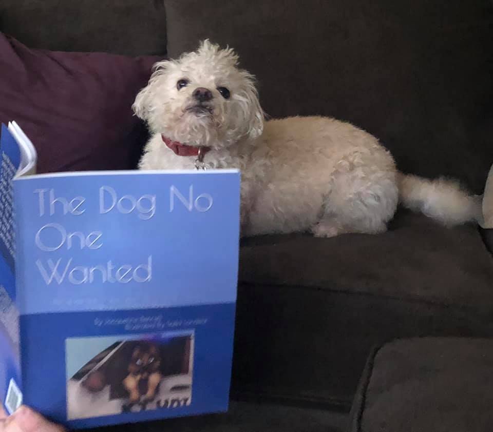 Photo by Jillian Bennett My niece Jillian’ s dog Munch reading my new children’s book “The Dog No One Wanted”