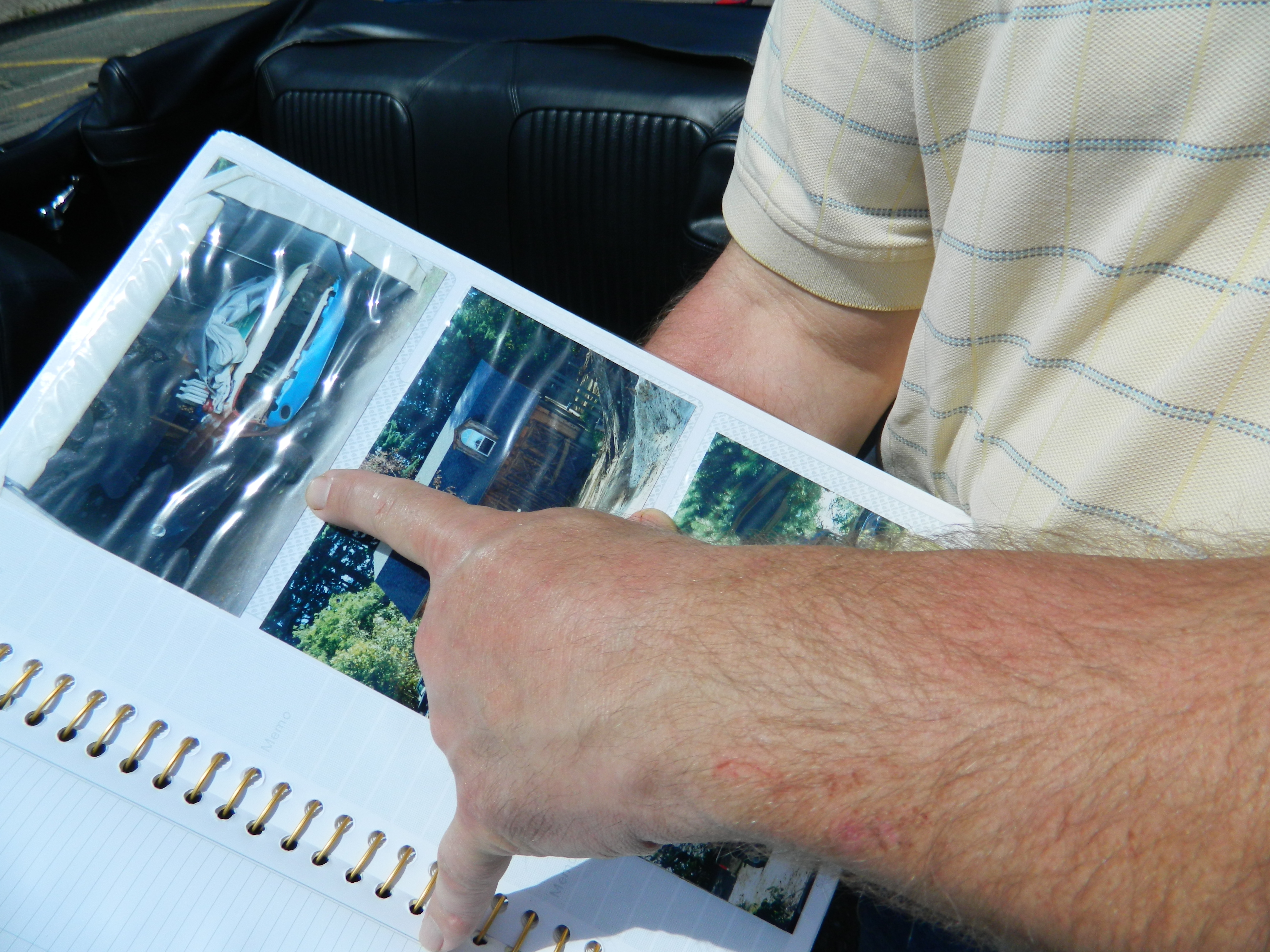 Erik Neilsen shows photos of his friend’s Mustang before restoration.